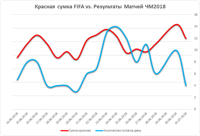 Чемпионат мира по футболу в России – время, когда все готовят прогнозы, выявляют закономерности, собирают статистику и ищут связь с футболом. Сейчас эпоха Big Data, мы решили не отставать от коллег и на основании «больших данных» выявили интересную взаимосвязь – количество приобретенных сувенирных красных сумок Fifa коррелирует с забитыми мячами.