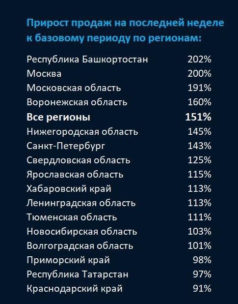 Если брать срез по городам, то здесь без сюрпризов – больше всего красных сумок Fifa болельщики приобрели в Москве. Стоит отметить, что матчи в этот день были в Нижнем Новгороде, Екатеринбурге и Казани – там количество продаж без видимых всплесков.