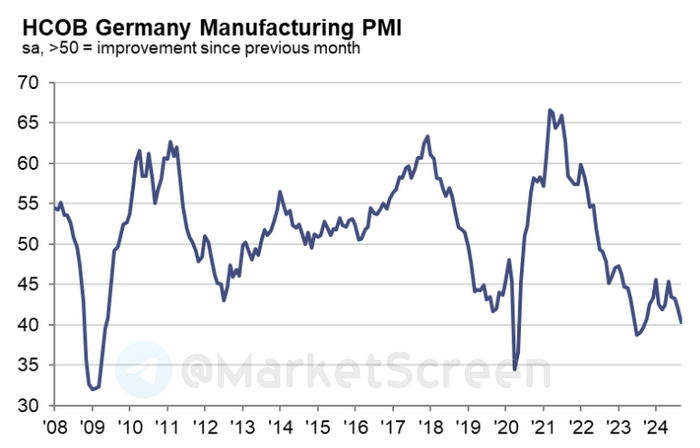 Германия: 40,3 (август: 42,4). 12-месячный минимум.