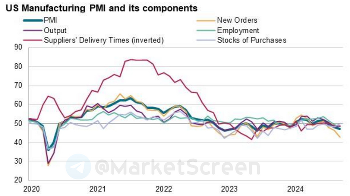 Это любимый нами индекс деловой активности в промышленной сфере. Который, если ниже 50, то плохой.
