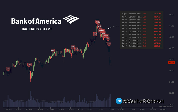Места, где Баффетт скидывал акции Банка оф Америка.