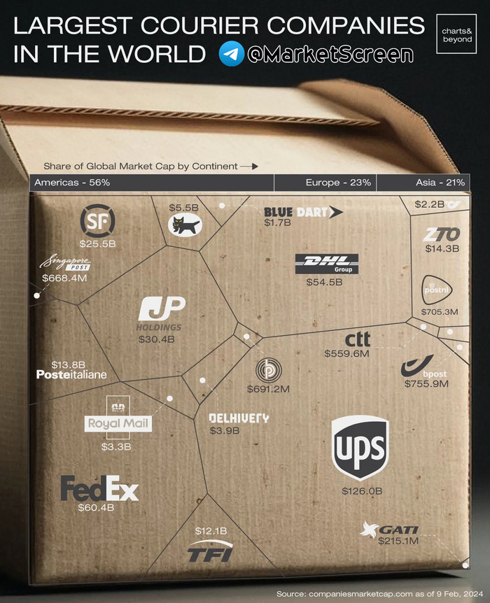 "Большой тройка" - United Parcel Service (UPS), FedEx и DHL - продолжают доминировать в сфере курьерских услуг по всему миру.