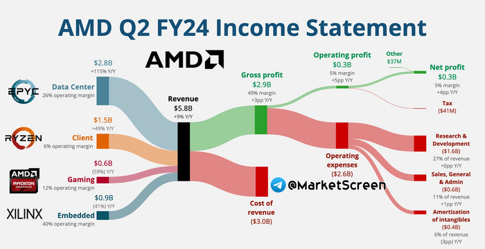 Вы сказали в 2022: "AMD в зеркале заднего вида”. Сегодня клиентский бизнес AMD растёт двузначными цифрами, сегмент центров обработки данных - трехзначными цифрами.