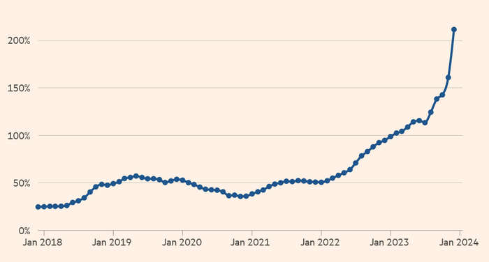 Процентные расходы ФРС — проценты, которые она выплачивает банкам и контрагентам по RRP (операциям обратного РЕПО), — увеличиваются с каждым повышением ставки.