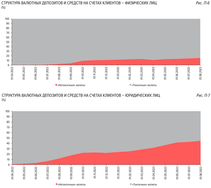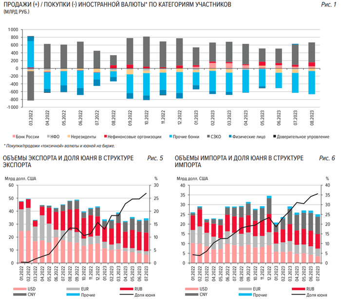 Доля юаня в августе на биржевом валютном рынке - 44,7%. Доля токсичных валют - 53,9%