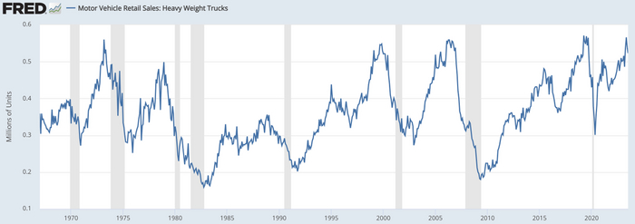 Это график продаж тяжелых грузовиков в США с полным весом более 14 000 фунтов (6 350 кг?).