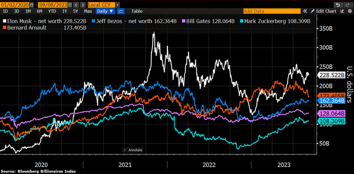 Бернард Арно, хозяин дома Луис Виттон МОЁТ и Хеннесси слегка худеет, ибо худеет цена акций его компании. При этом заметьте, как ведут себя миллиардеры. Снижение цены акций - не повод их продавать, а наеборот. Повод их купить. Вот и Бернард прикупил акций LVMH на 215 млн. евро после того, как разочаровывающие доходы люксового конгломерата в конце июля привели к падению курса акций.