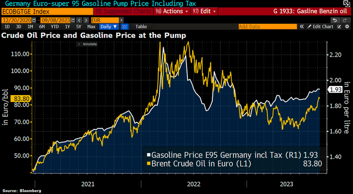 В Германии цены на бензин имеют обыкновение следовать за ценой нефти. В отличии от нашей с вами России.