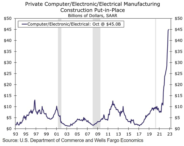Объем частного производства компьютеров, электроники и электротехники, составивший в октябре 45 млрд.$, увеличился более чем вдвое с начала года, поскольку местные производители расширяют свои операции с чипами после периода дефицита и проблем с поставками.