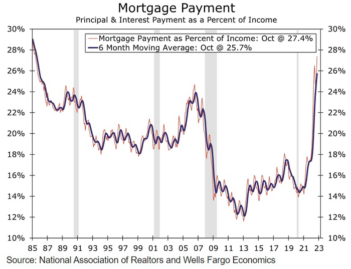 По данным Национальной ассоциации риелторов и Wells Fargo доля ипотечного платежа в ежемесячном доходе составила 27,4%. Это уровень середины 80-х годов.