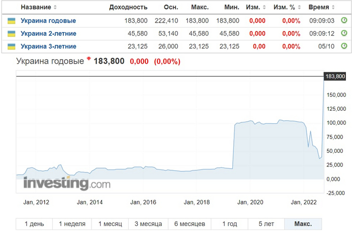 Таблица доходностей американских облигаций.