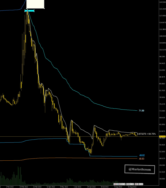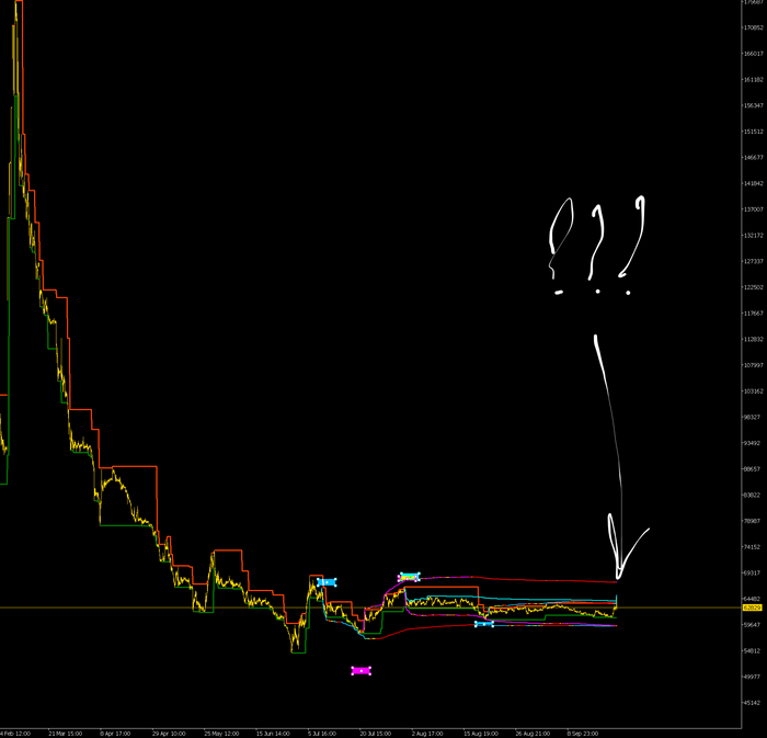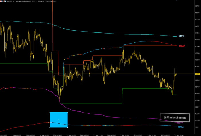Взгляните на картинку, как индекс 6 месяцев спускался с регулярными откатами к VWAP. И вчера снова вышел на него. А вот уход индекса вниз на бирюзовый VWAP 8-9 сентября ознаменовал максимумы по фьючерсу РТС в те дни.