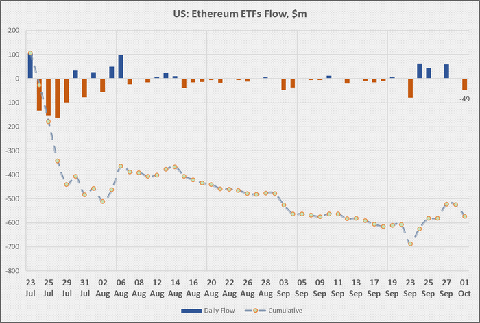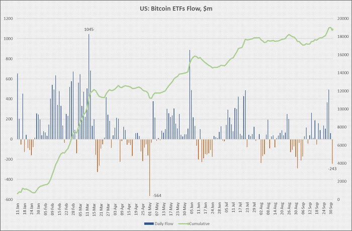 В отличие от предыдущих крипто-ETF у альткоина не будет драматичного старта, поскольку трастовый фонд Grayscale с Solana насчитывает всего $73 млн. Для сравнения, ETHE с Ethereum в момент преобразования в спотовый насчитывал 2,9 млн ETH на $10 млрд. Отток из этого фонда до сих пор перекрывает приток во все прочие свежесозданные, из-за чего совокупный результат с даты одобрения составляет -$556 млн.