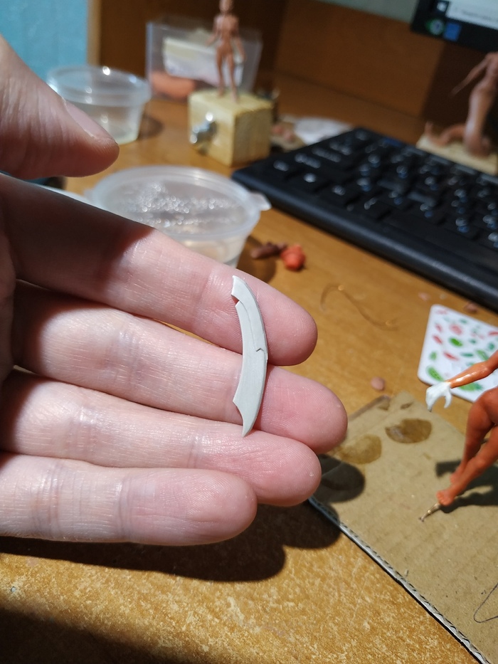 клинок забабахал из эпоксидки, все же для таких штук эпоксидка удобнее и обрабатывается лучше, чем полимерка
