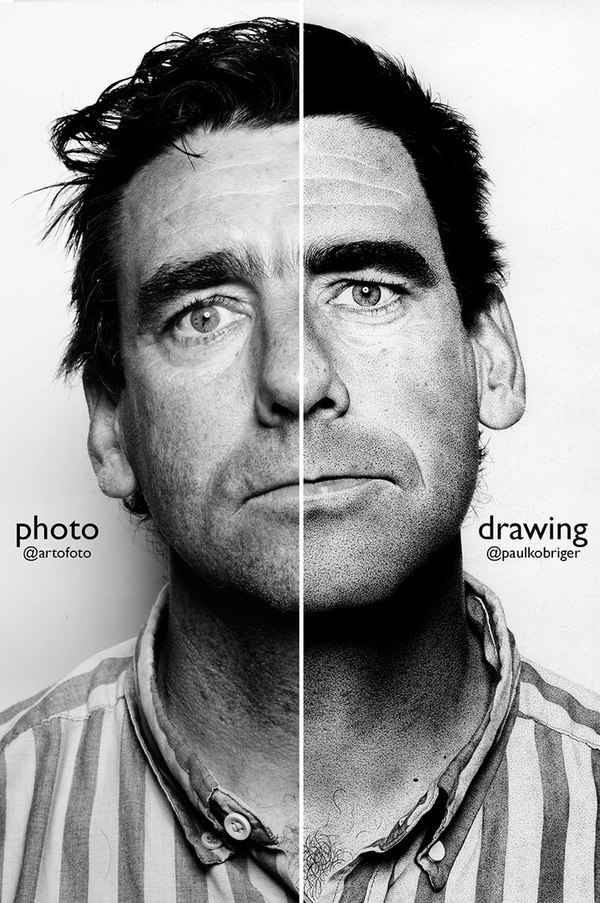 Сравните эти портреты шариковой ручкой с фотографиями, с которых они срисованы. Автор работ - Paul Kobriger.
