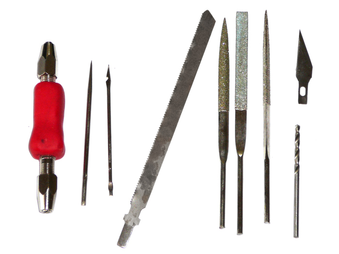 В самую большую цангу помещаются хвостовики надфилей и сверла диаметром порядка 3 мм. После подпиливания хвостовиков у пилки и лезвия ножа для точного реза они тоже влезли в держатель. Держится все прочно, не болтается.