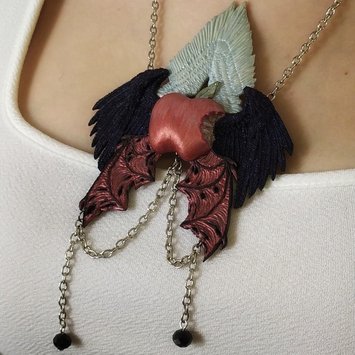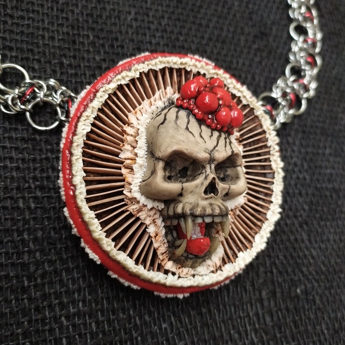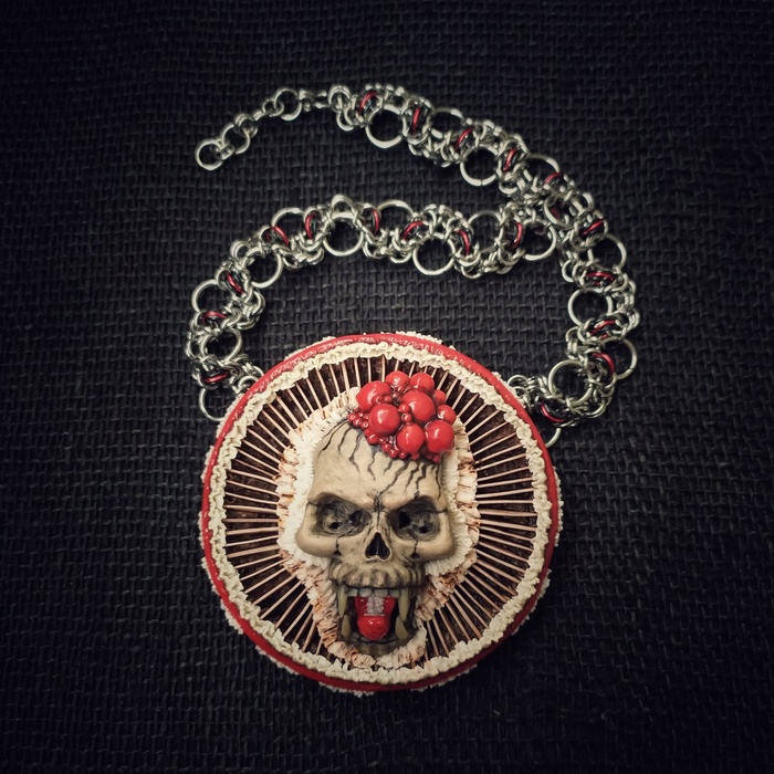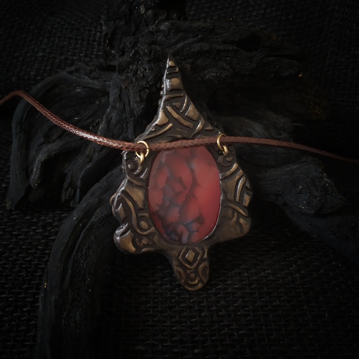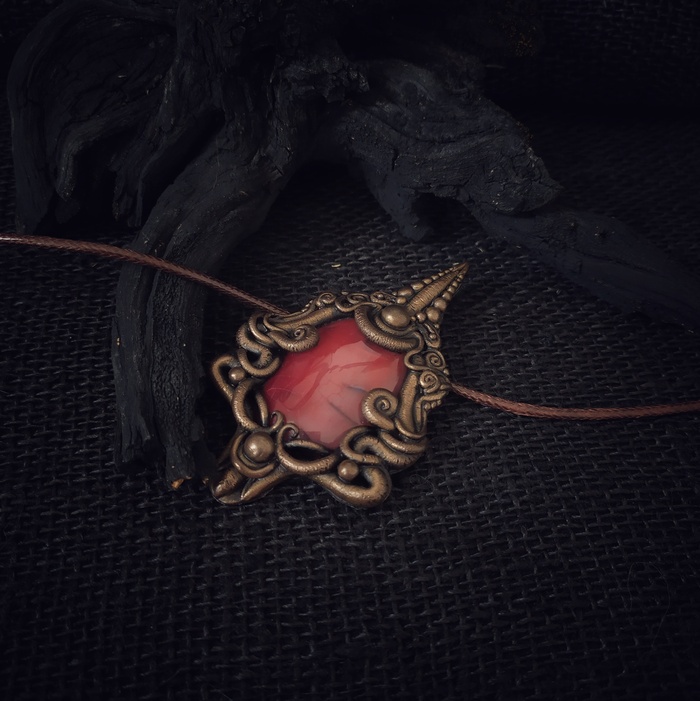 Брошь и кулон изготовлены из цветной полимерной глины и натуральных камней.