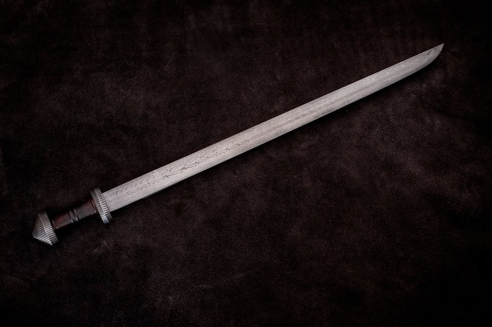 Один из самых известных и красивых мечей. Интересен в числе прочего сложнейшим мозаичным долом в виде вытянутых шестиугольников по всей длине клинка.