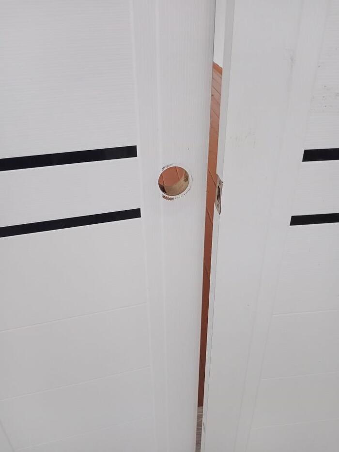 В школьном кабинете имеется обычная межкомнатная дверь. И уже устали туда покупать замки, поскольку школота ими балуется и замок живёт от силы пару месяцев. Можно поставить покрепче замок, но имеется вот такая дыра. (см фото). Стояли замки-защёлки с ключом (принципиально важно).