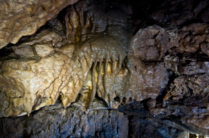 В пещерах достаточно сыро, температура держится круглый год около +5 градусов. Стены покрыты кальцитом, как глазурью.
