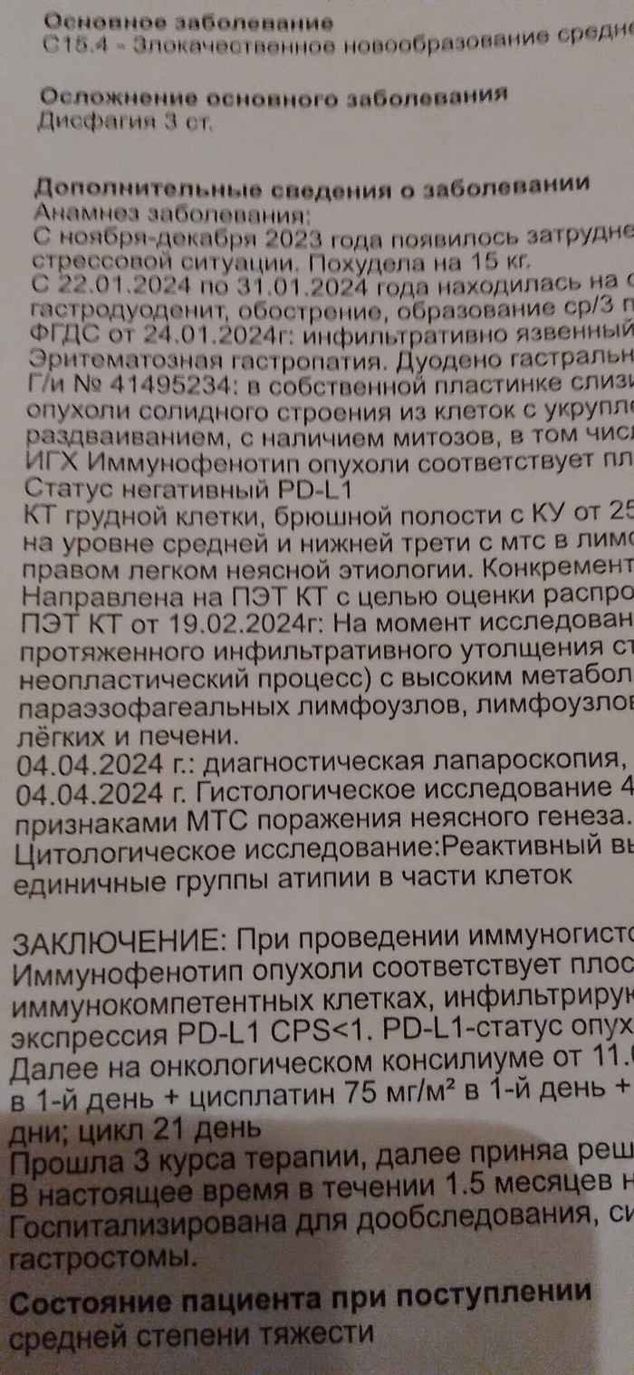 Я его отчасти понимаю, я стала очень слабой, когда рак себя проявил (пищевода), даже пить не могла, всё назад. Голодала неделями, терпела, не знала, что со мной.