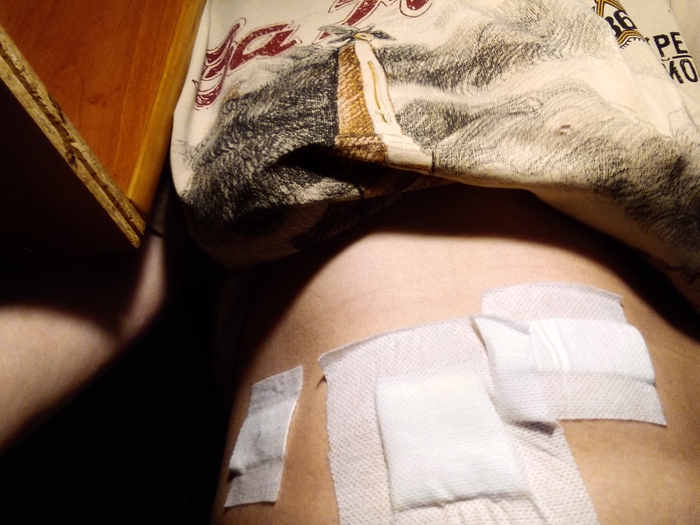 А вот так берут кусочки поражённых органов, дырки в животе, общий наркоз