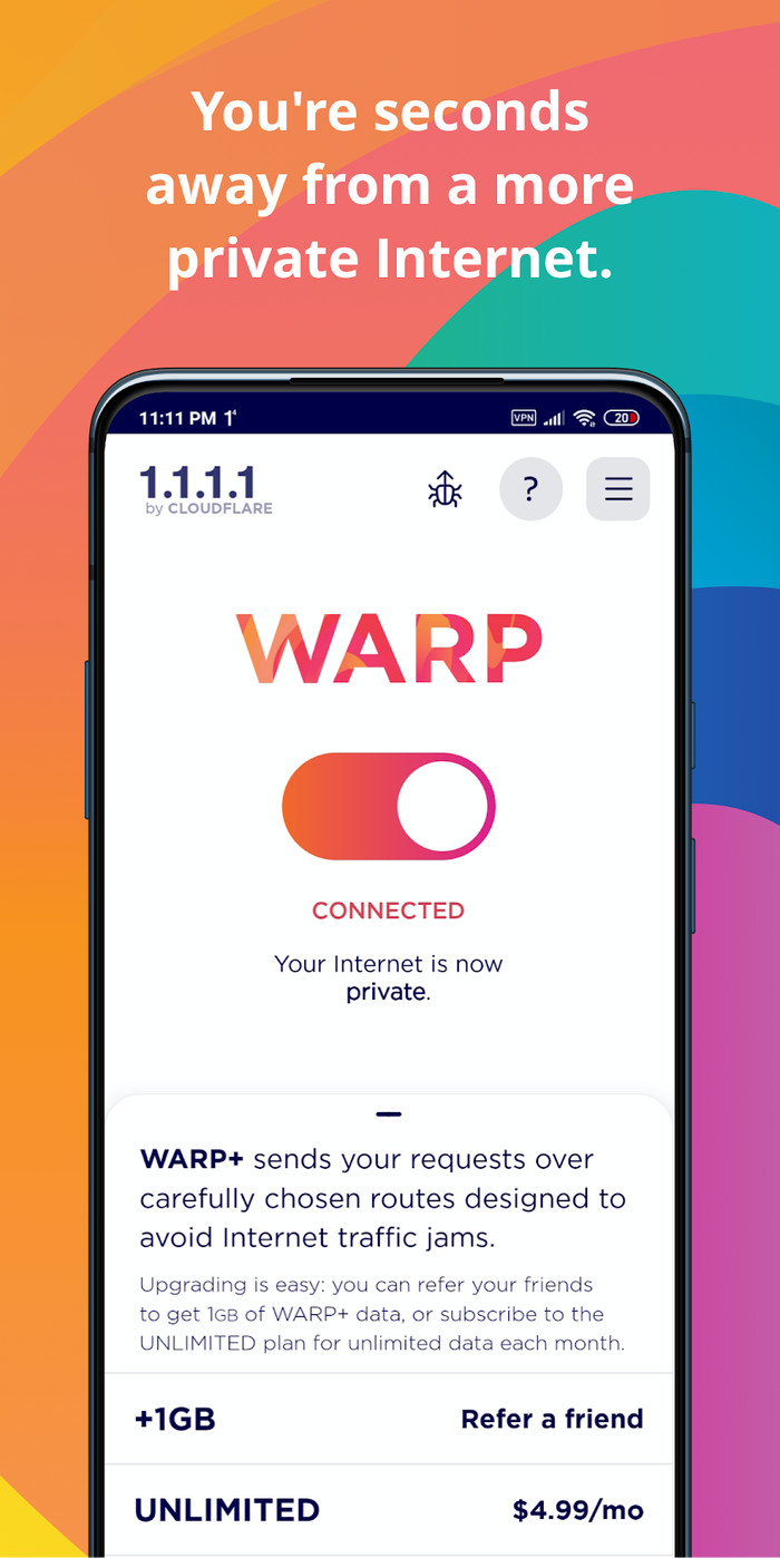 Закрытый бесплатный VPN от Cloudflare на основе протокола Wireguard. Рекламы нет, поэтому поместил в этот список.