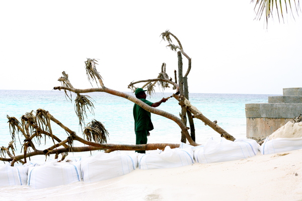 Как с этим сражаются отели? Мешки с песком и закачивание песка из окена на мелководье и лагуну. Делается это ежедневно, как превентивная мера, так и для поддержания эстетической стороны - никто не будет платить тысячи долларов за вид на мешки с песком на пляже.