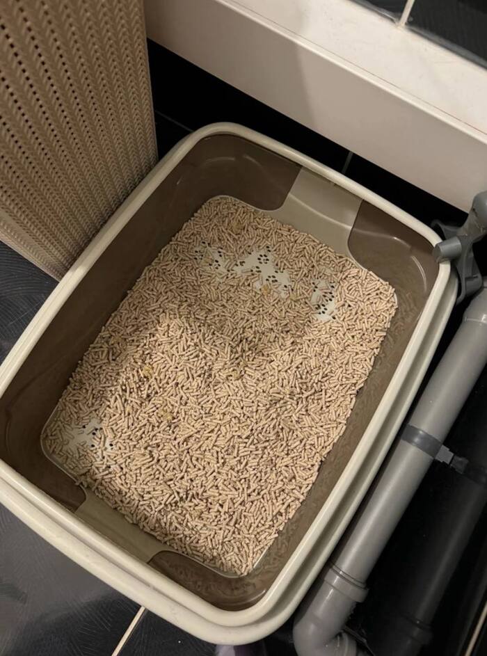 Мы купили новый просторный лоток — с высокими бортиками, чтобы и развернуться можно было, и копать сколько угодно. Заодно я решила сменить и наполнитель.