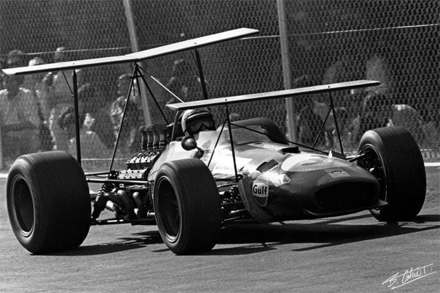 Часто такие антикрылья ломались из за нагрузок что приводило к авариям, но это мелочи в погоне за скоростью.