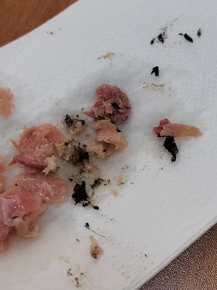Купили банку тунца ТМ Сохраним традиции. Какие они там традиции сохранили мне не понятно, но в тунце обнаружилось нечто черное-зеленое, по консистенции не пастообразное, а скорее плотное, но при размазывании оставляет крошащийся след.