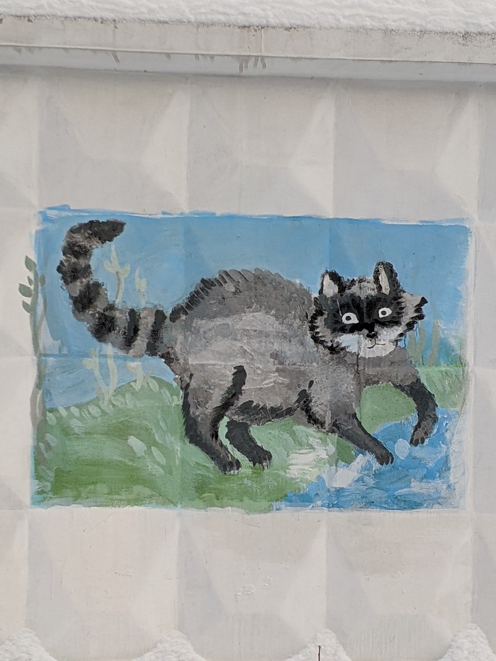 Про енота ничего не придумал, но он испуганный и забавный:)