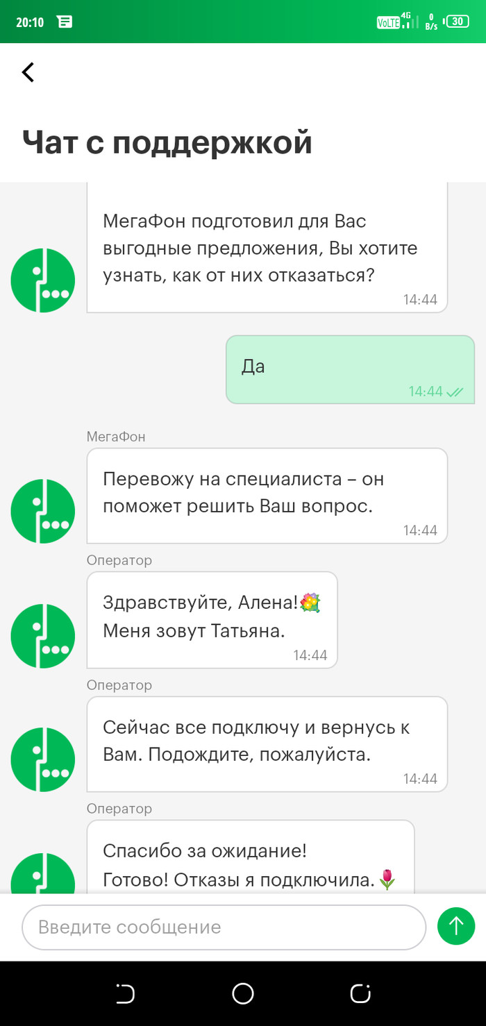 Настрочила тут же в чат в приложении, что, мол, хочу подключить отказы.