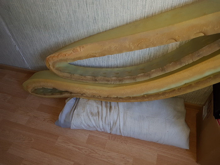 Поролон проеден пружинами насквозь. по этому и спать на нем было пыткой. а отчасти виновата в этом ткань между пружинами и поролоном которая от времени сбилась в комок по центру и не прикрывала поролон от проедания пружинами.