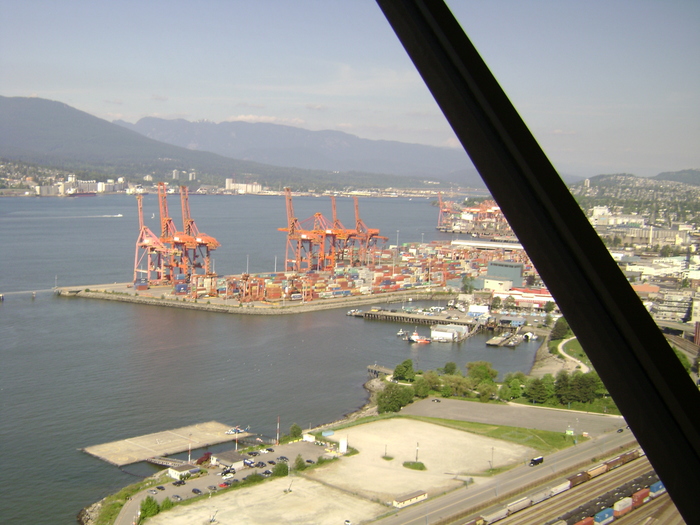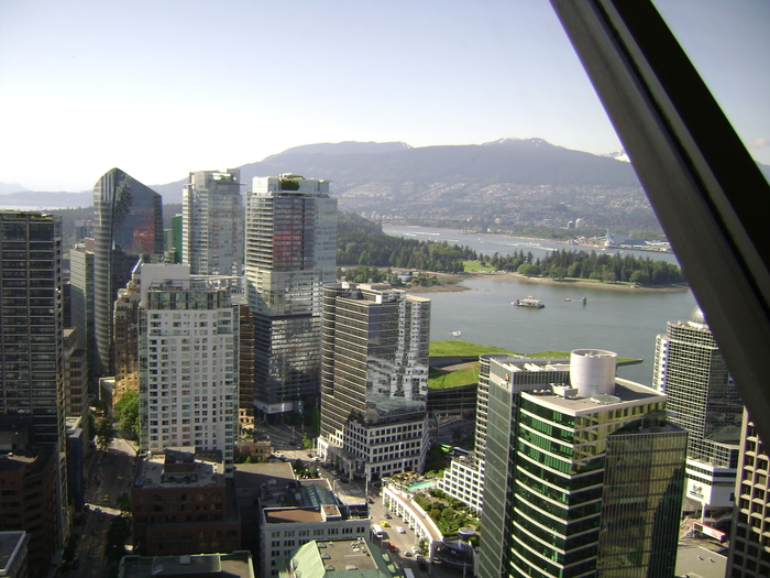 Вид на северо запад, виден Стэнли парк, ну его часть. Через залив, на другом берегу это западный Ванкувер.
