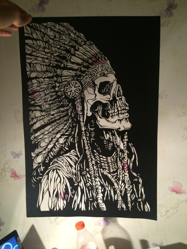 Шаблонов в инете нужной тематики найдено не было, поэтому выкручивалась найдя фанатский постер, распечаток его 7 раз, по количеству предполагаемых слоёв и по перспективе на рисунке вырезано (без косяков все равно не обошлось)