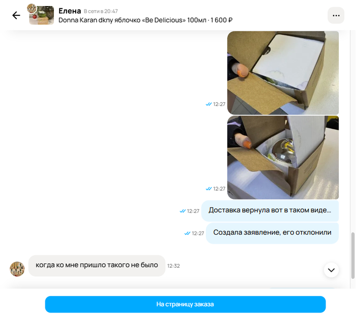 Я продала духи через Avito, отправив их покупателю через службу доставки Яндекс. Товар был в идеальном состоянии: коробка с духами чистая, целая, без повреждений. Перед отправкой сделала фотографии (где есть даты и время съёмки) подтверждающие состояние товара. При отправке оператор принимающий товар видел что коробка духов в отличном состоянии, новая и чистая, флакон не течёт, коробочка целая. Оператор Яндекс Доставки осматривал товар — дефектов и повреждений зафиксировано не было. Дополнительно коробка с духами была зафиксирована пупыркой и плотно стояла внутри почтовой коробки. Парфюмерная коробочка внутри стояла плотно, но не прижато. Товар приняли, он поехал.