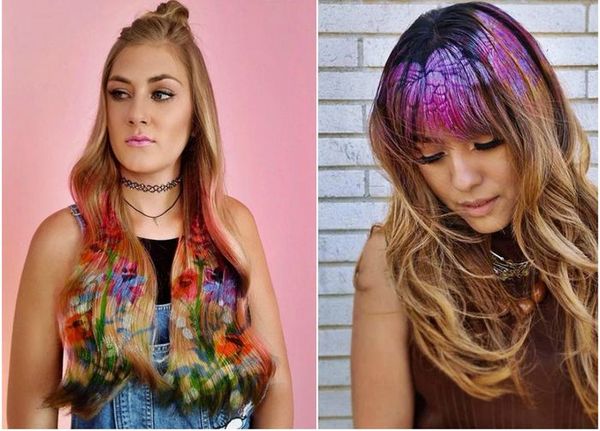Такой вид окрашивания позволяет постоянно быть разной, ведь подобные спреи полностью безопасны для волос и смываются буквально после первого мытья головы. Такой вариант отлично подходит для праздничной причёски, посещения фестиваля и просто для того, чтобы удивить окружающих.