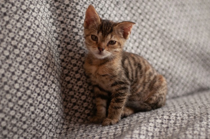 Имя прилипло само собой - настолько миниатюрная кошечка, что даже не верится, что это сестренка Марселя из одного помета. Шустрая бандитка и ласковая кроха, которая после плотного обеда может похвастаться пузиком-арбузом с неповторимым узором из пятнышек и полосок)