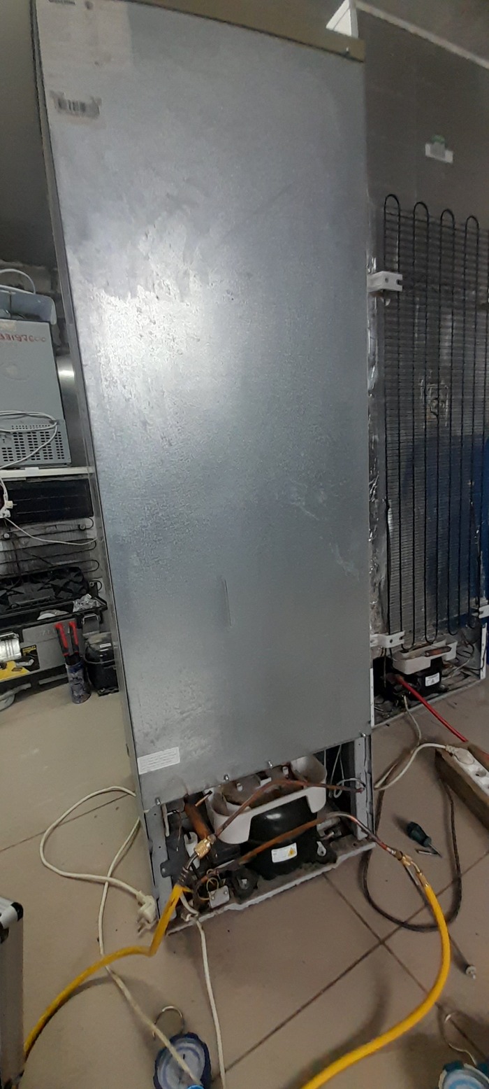 Конкурент приволок испаритель холодильника из аллюминия (врочем они сейчас все такие). Нижнию трубку перетерло, как я подозреваю ТЭНом отайки.
