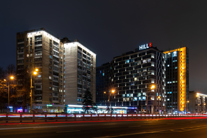 Новый ЖК, построенный прямо напротив метро Алексеевская, одно из немногих зданий "свежей" постройки не квадратной формы и без ярких цветов фасада.