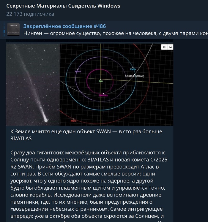 В ту же эпоху астрономы следят и за другими объектами — кометами SWAN и LEMMON. Их появление одновременно с ATLAS дало повод для множества разговоров. Для науки это ценные объекты наблюдений, которые помогают лучше понять процессы в космосе. Для широкой публики — повод для догадок и попыток связать всё воедино.