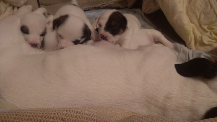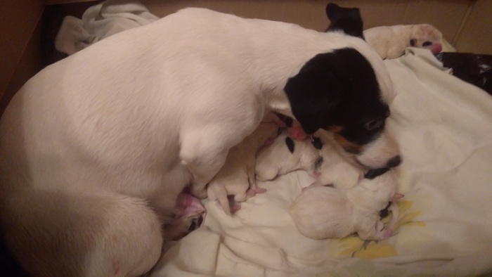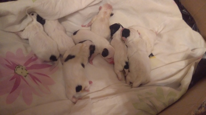 В продолжении поста Собаки . Ощенилась. Справилась сама, без вмешательства.8 псин!