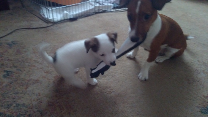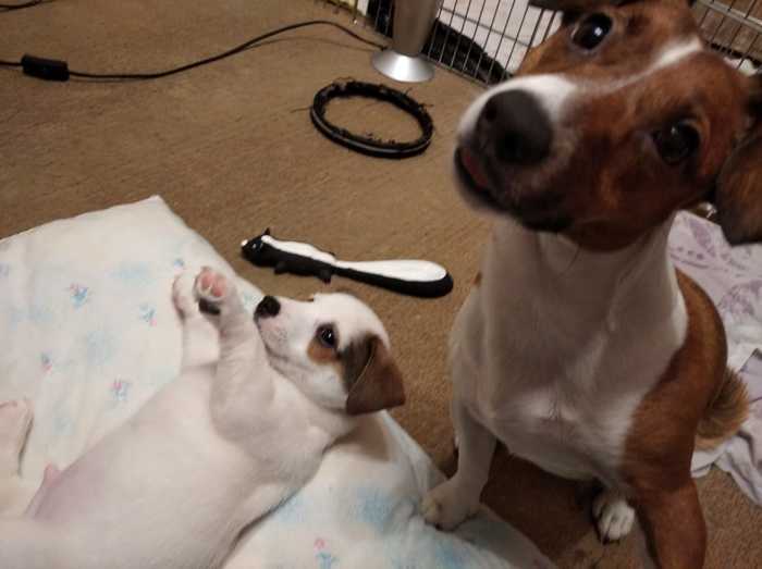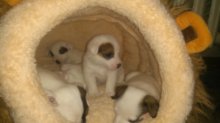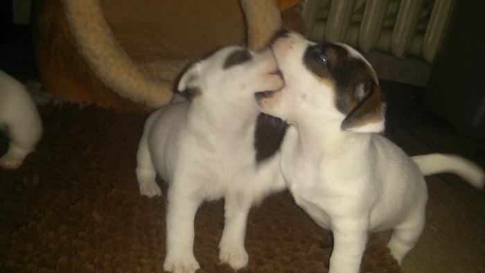 Собаки продолжение Щенки растут. Ихамать в норме). Добрейшая и послушная псина оказалась. При этом заботится о щенках и защищает.