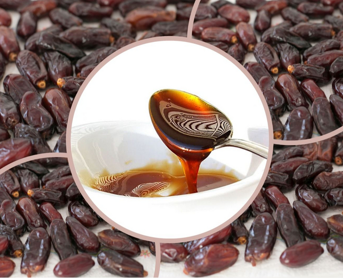 Можно приготовить домашний сироп из фиников, прокипятив, пока не получится консистенция, напоминающая медовую. Или купить готовую продукцию.