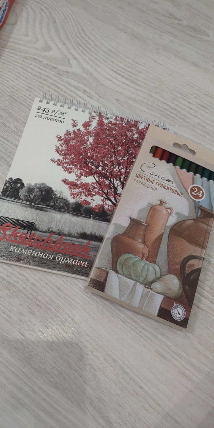 2. Я указывала в интересах рисование, и моя милая снегурочка прислала скетчбук-блокнот из плотной бумаги и набор очень классных карандашей!