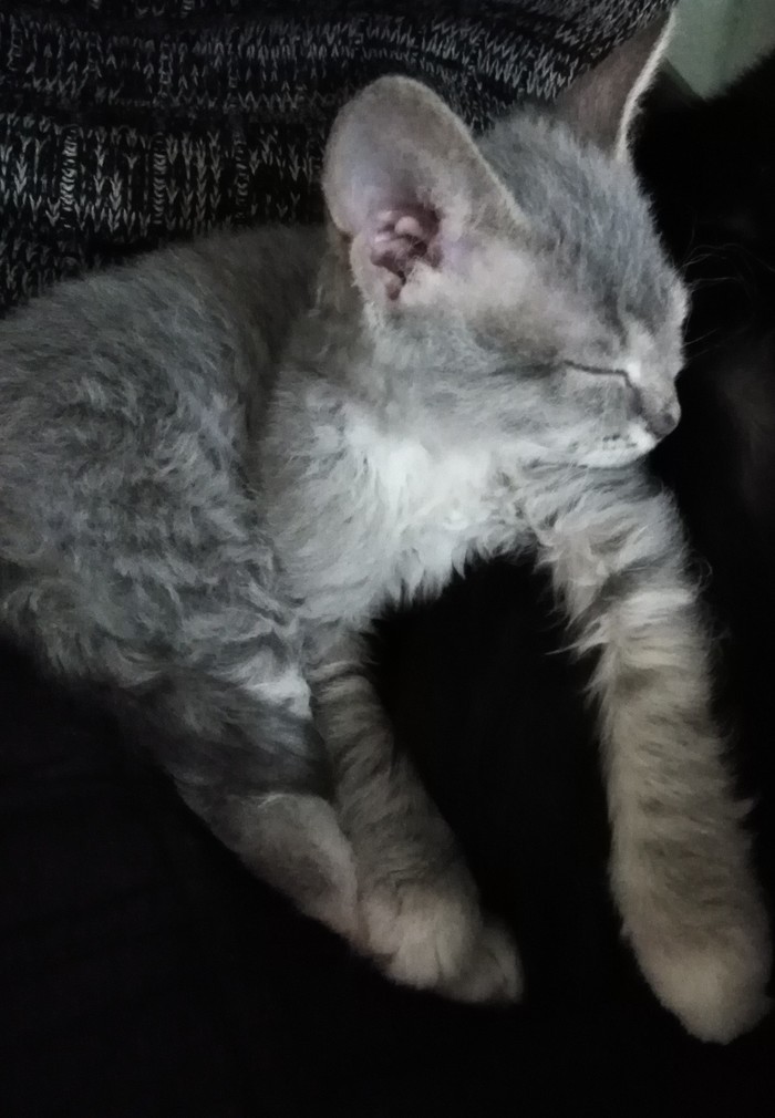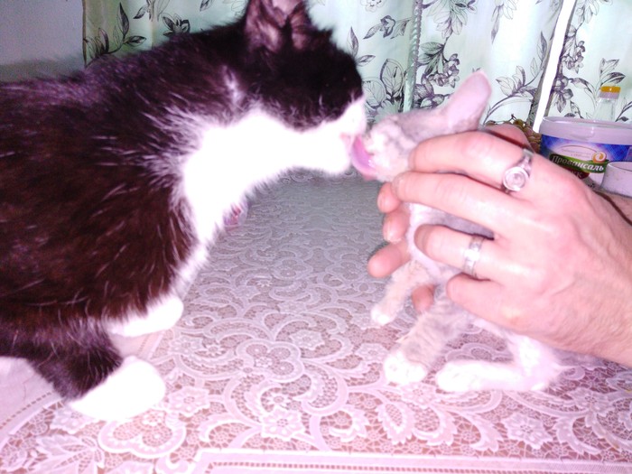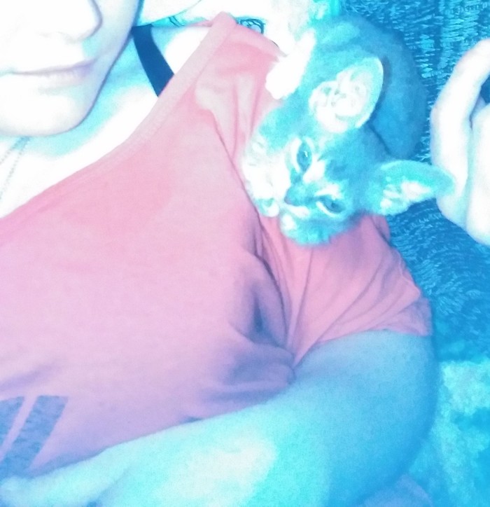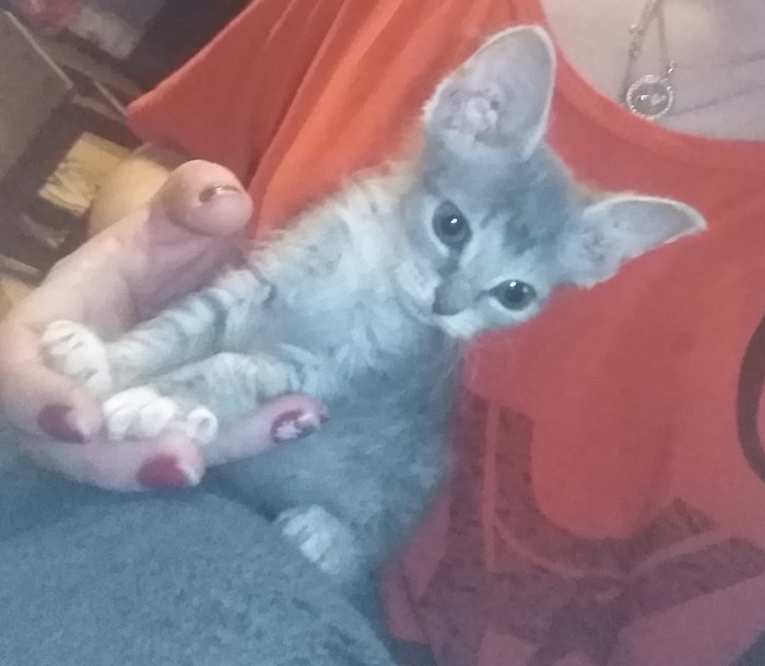 Найден котенок. Примерный возраст меньше месяца. Кормим из пипетки молоком разбавленным с тёплой водой (не знаем правильно или нет). Может кому надо? Говорят что в нем есть сфинкс и ещё кто то... Назвали Вискасом:))) потому что мяукнул на это имя:)))