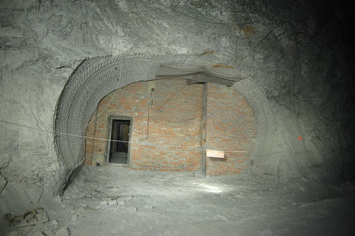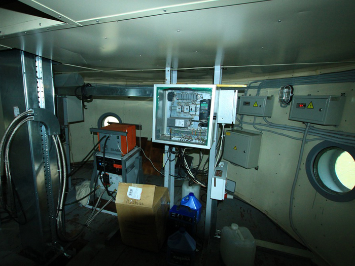 Удалось посетить только недостроенную часть спецобъекта, которую не ввели в эксплуатацию, а затем распилили сами военные. Примечательно, что добыча строительных пород ведется по сей день, и сооружение становится ещё больше, на стенах под потолком видны остатки бывших ходков.