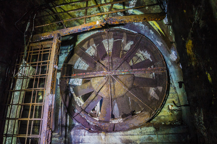 В таком объекте удалось побывать... Выработки такого масштаба не обошлись без вниманя военных, и в 50-х началось строительство города в глубине скал. В лесу воздвигались укрепленные штольни, обнесенные колючей проволокой территории скрывали вентиляционные шахты и аварийные выходы.
