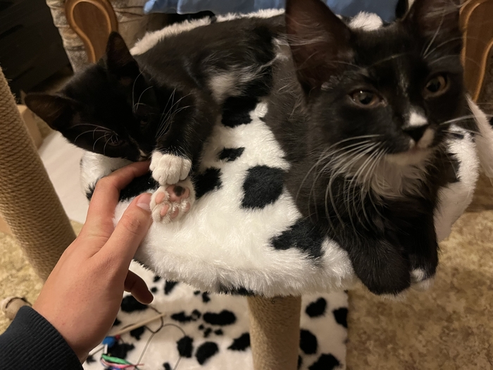 Брат и сестра, взятые из приюта, в возрасте пары месяцев. Сейчас уже 2 года, как живут дома и впервые были замечены в подобном приливе нежности. Обычно гоняют бесов и друг друга)